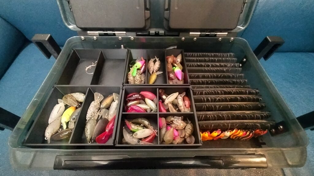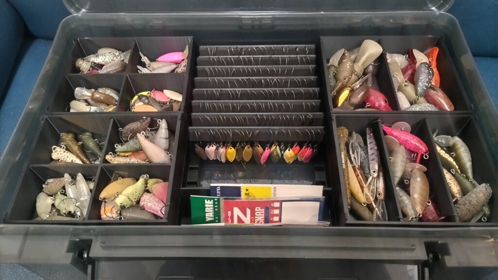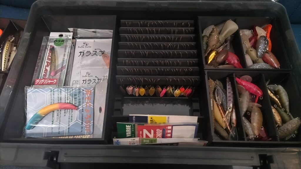 大型ケースは、ライン、フックやスプーン、プラグを袋や箱ごとまとめて収納しておくことができますので、予備をまとめて乱暴に突っ込んでおくことができます。
